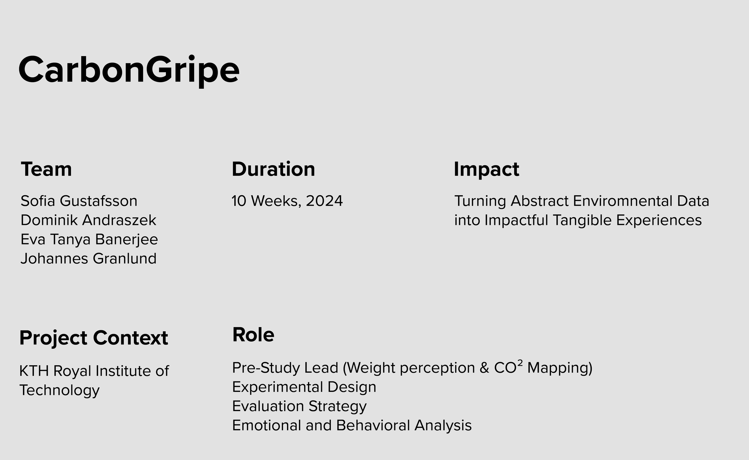 Our team designed CarbonGripe, an interactive system that physically represents the CO₂ emissions of different transportation methods through tangible weights.